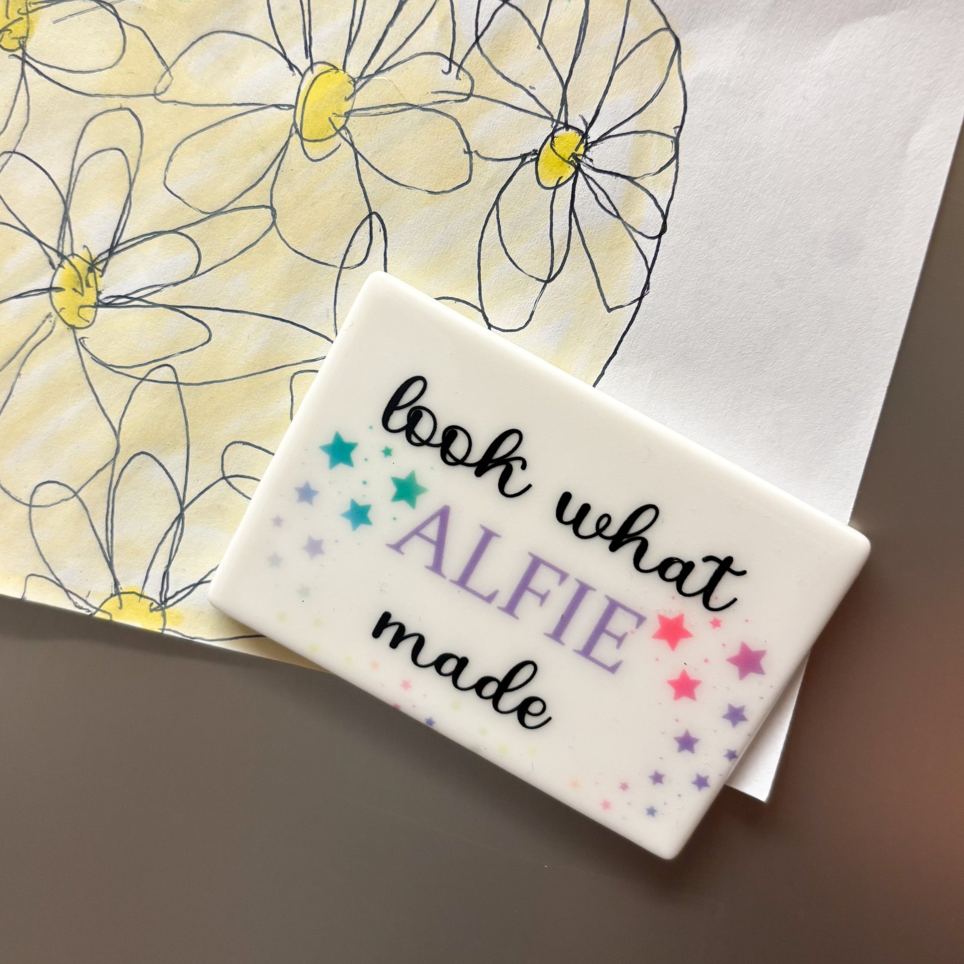 Drawings cluttering the fridge from your little artist? How about a special magnet so they know just where to put it.