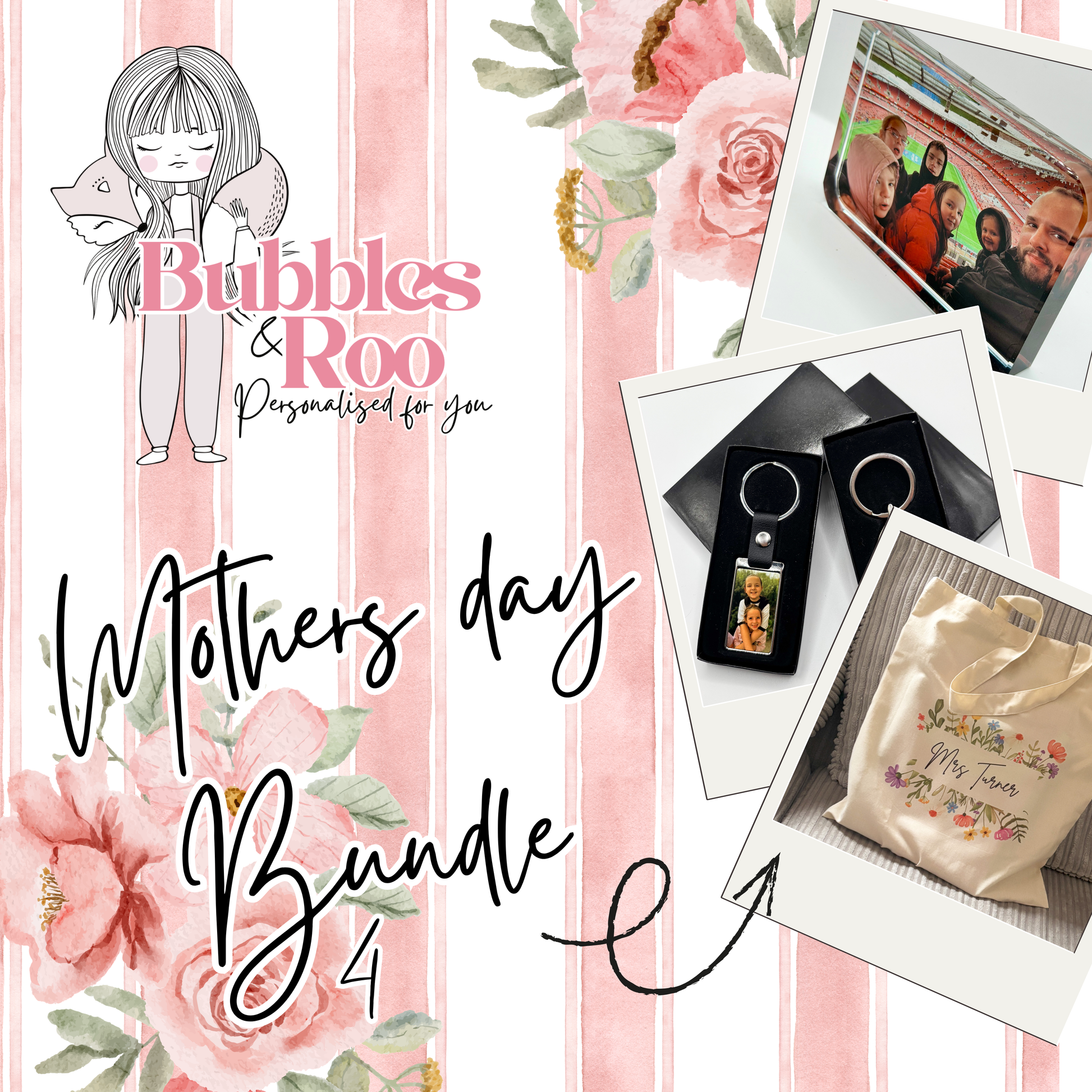 Mothers Day Bundle 4 | Large crystal photo block | Leather chain keyring | Tote bag | photos | gift